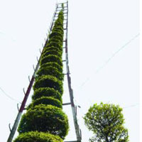 Để chăm sóc cây cảnh này, anh đã phải dùng tới một chiếc thang được thiết kế đặc biệt